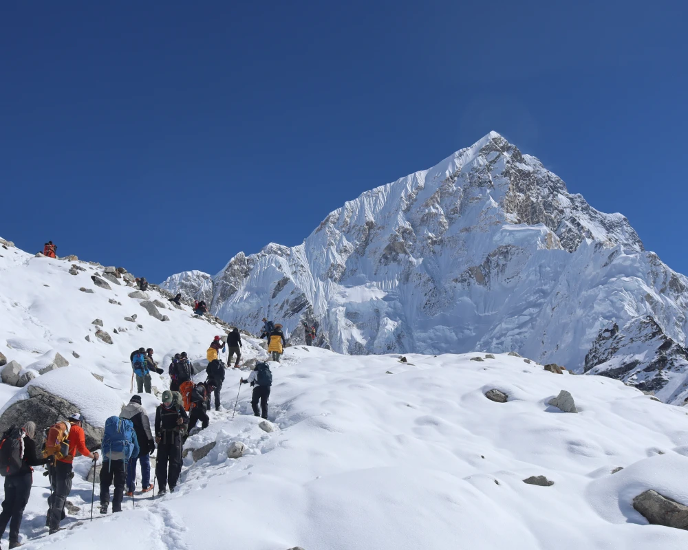 The trail then leads to Lobuche, a small settlement near the Khumbu Glacier. Along the way, we pass Thugla Pass, a memorial site honoring climbers who lost their lives on Everest. From Lobuche, we make our way to Gorak Shep, the final village before EBC. A hike to Kala Patthar (5,545 m) rewards us with the most breathtaking view of Everest and its neighboring peaks.